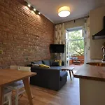 The 34 m^2 Poznanska Apartment is situated in the Jezyce district, 10 minutes' drive from Poznan-Lawica Henryk Wieniawski airport. Set just a 6-minute walk from Old Zoo, the apartment with a sunny patio overlooks the garden.